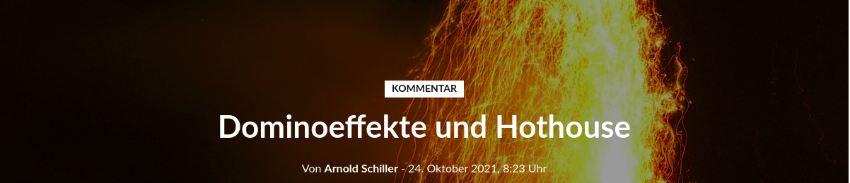 Dennoch gibt es wie beim Wasserglas bestimmte Wenn-Dann-Beziehungen, die unbestreitbar sind. Die Hothouse-Earth-Erzählung auf Grund wissenschaftlichen Untersuchungen und Daten ist hier so etwas wie der Rand des Glases. Mit der Einschränkung, dass wir nicht genau wissen, ob der Rand bei 2C°, 3C°, 4C° usf. ist. Die Autoren setzen die Zweigradcelsiusgrenze. Wenn das Glas überläuft, dann ist es vorbei. Wir könnten ja den Wasserhahn abstellen, dann läuft das Glas nicht über. Die Erde mit menschengemachten Treibhausgasen zu befüllen, wird aber zu Kipppunkten führen. Es gibt darüber hinaus auch andere Prozesse, die die menschliche Existenz gefährden können. Diese haben noch nicht einmal mit Treibhausgasen zu tun. Die Entwaldung des Planeten und die damit einhergehende Zerstörung der Biodiversität kann uns genauso die Existenz kosten. Als Spezies stehen wir am Ende einer Nahrungskette und werden uns nicht wie primitivere Lebensformen weiterhin ernähren können, wenn gewisse Grundsysteme zusammenbrechen. Ein Blick in das Universum genügt, um festzustellen, dass die Physik andere Atmospähren bereit hält. Ein Planet kann seine Atmosphäre verlieren oder sie kann sich aufheizen auf ein Mass, welches letztlich gar kein Leben mehr zulässt.